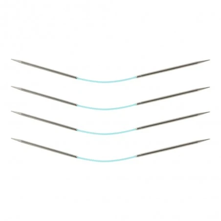 Las agujas de acero Sharp Flyers HiyaHiya se presentan en packs de 4 unidades. Son perfectas para tejer proyectos de forma similar a las agujas de doble punta. Tres de estas agujas serán las encargadas de sujetar el proyecto, y la cuarta la utilizarás para tejer.