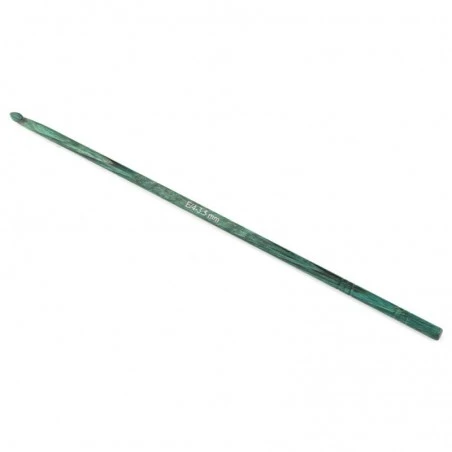 Su diseño incorpora una hendidura para que puedas apoyar el dedo cómodamente. Además, el gancho está pulido para evitar que tus materiales se enganchen mientras tejes. Disponibles en 15 grosores diferentes que van desde 3 mm hasta 12 mm, estas agujas ofrecen la versatilidad necesaria para adaptarse a cualquier proyecto, permitiéndote tejer con facilidad y estilo.