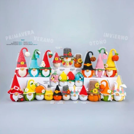 Cada gnomo tiene un diseño único y detallado, con adornos y complementos que van desde flores y animales hasta libros y lápices, todos con diseños únicos y creativos. Encontrarás el gnomo perfecto para cada estación o evento del año, como el gnomo navideño, el gnomo de Pascua o el gnomo de Halloween.