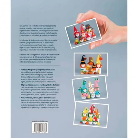 Amigurumi. Gnomos es un libro que te invita a descubrir un mundo lleno de color y fantasía con 24 adorables gnomos de ganchillo que sorprenderán tanto a quienes los reciban como a quienes los vean. Estos tiernos y originales muñecos no solo son perfectos para regalar, sino también para decorar tu hogar, transmitiendo simpatía y alegría al instante.