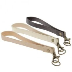Las asas están hechas de cuero sintético de alta calidad y presentan un acabado elegante. Incluyen un mosquetón, una anilla y una tachuela. Tienen un tamaño de 18 centímetros, 21 centímetros con la hebilla incluida.