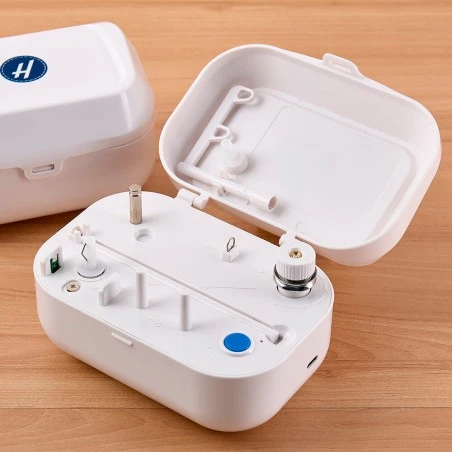Puedes alimentar la bobinadora con 3 pilas AA (no incluidas) o mediante un cable y adaptador USB tipo C (tampoco incluidos). La bobinadora viene con una práctica guía e instrucciones, así como un husillo extra.