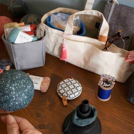 La Bolsa de Labores Canvas de Cohana es el compañero perfecto para mantener todos tus materiales de labores y manualidades organizados de manera impecable. Este espacioso bolso rectangular está diseñado con múltiples bolsillos externos para garantizar que tengas el lugar perfecto para cada herramienta.