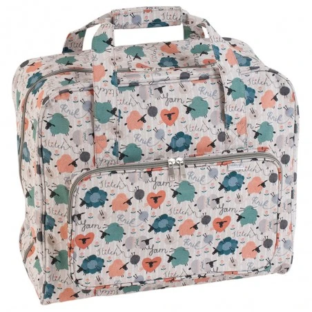 La Bolsa para Máquina de Coser Knit Happens de Hobby Gift es una opción divertida y práctica para quienes buscan proteger y transportar su máquina de coser. Confeccionada en algodón recubierto de PVC mate, presenta un encantador estampado que incluye ovejas, ovillos de lana y las palabras «yarn» y «knit», ideal para los amantes del tejido.