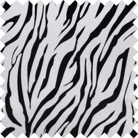 Está hecha por tela de algodón 100%, con un llamativo estampado de pelaje de cebra. Se encuentra plastificada con PVC, lo que consigue que sea mucho más resistente y repelente al agua. Para su limpieza solo debes utilizar un paño húmedo y limpiar las manchas.