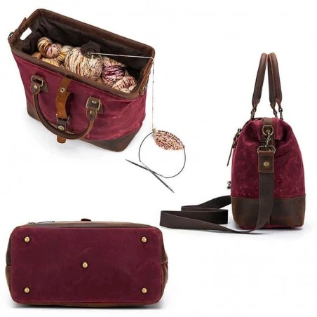 Además de sus asas de mano, incluye una correa ajustable para el hombro, lo que ofrece una mayor comodidad al transportarlo. Equipado con un dispensador de lana, cortador de hilo y alfiler decorativo con marcadores de punto, es el bolso perfecto para tejedores que buscan estilo y practicidad en uno solo.