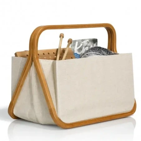 La cesta tiene forma de revistero plegable, lo que facilita el almacenamiento cuando no se está utilizando, ocupando el mínimo espacio posible. Cuenta con refuerzos laterales de bambú y una base estable de canvas de algodón, lo que proporciona una gran estabilidad mientras se encuentra desplegada.