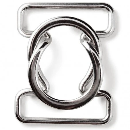 El cierre para bikini Prym está hecho de metal y cuenta con un ancho de 25 mm. Su acabado cuenta con una capa que lo protege del óxido, por lo que puedes mojarlo sin problema.