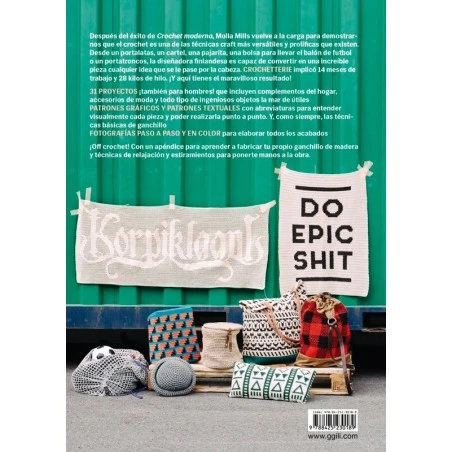 Es un libro ideal para crear piezas modernas y alternativas muy elegantes. Alfombras, jerséis, portatroncos y bufandas camiseta creadas por la diseñadora Molla Mills, conocida como la gurú crochetera del oeste de Finlandia.