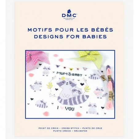 En el libro Diseños para Bebés en Punto de Cruz de DMC encontrarás un gran número de motivos para bebé, acompañados de instrucciones y gráficos para poder bordarlos en punto de cruz.