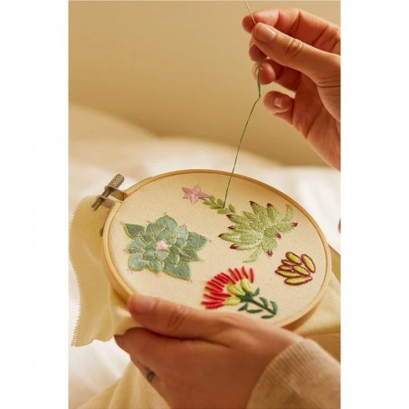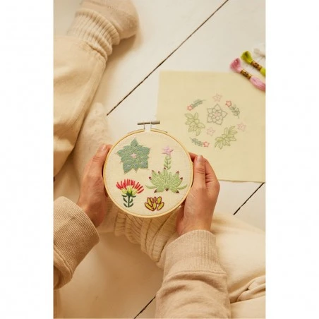 El Duo Kit de Bordado – Jardín en Miniatura de DMC te permite trabajar dos colecciones diferentes de hermosas plantas. ¡Podrdás crear un jardín en miniatura de suculentas bordadas!