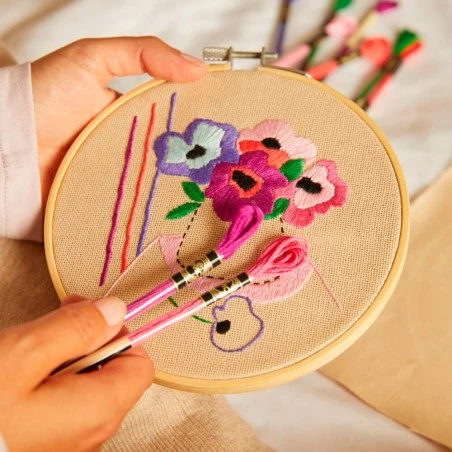 Con todo lo necesario incluido en el kit, podrás sumergirte en el arte del bordado y crear piezas encantadoras inspiradas en las flores de anémona. Embárcate en este viaje creativo y deja que la belleza de las anémonas cobre vida a través de tus puntadas.