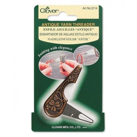 Ensartador de agujas estilo antiguo de Clover, con un precioso acabado vintage. Muy útil para enhebrar agujas laneras y cualquier aguja con ojo grande.