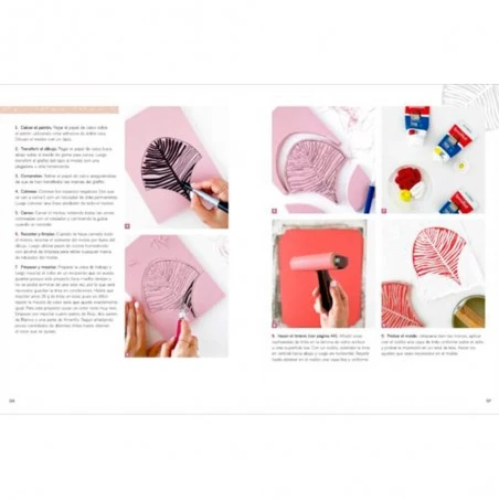- 4 proyectos de impresión con moldes, donde aprenderás a carvar tus propios diseños y crear composiciones más complejas.
