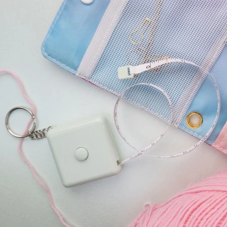 El estuche presenta bolsillos para organizar cada herramienta incluida y un compartimento translúcido con cierre de velcro para guardar de forma segura los marcadores de puntos, la aguja de coser y más.