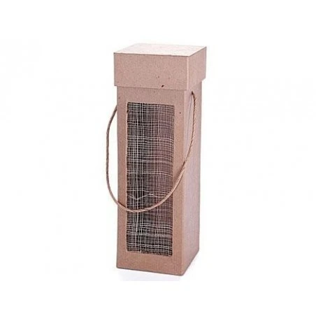 Estuche para botella de vino, su forma es cuadrada y esta fabricada en papel maché. Su tamaño es de 10 x 10 x 30 centímetros. Perfecta para realizar todo tipo de decoraciones personalizadas.