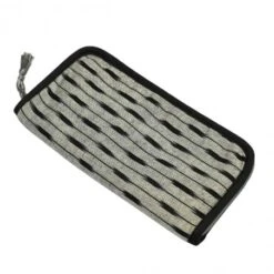 La tela del estuche presenta un elegante diseño en colores gris y negro, logrado mediante la técnica de teñido anudado conocida como ikat. Esta técnica crea una sofisticada mezcla de colores y patrones que le proporciona al estuche un aspecto original. Con su diseño atractivo, el estuche no solo es funcional, sino que también se convierte en un accesorio de moda para los entusiastas del tejido.