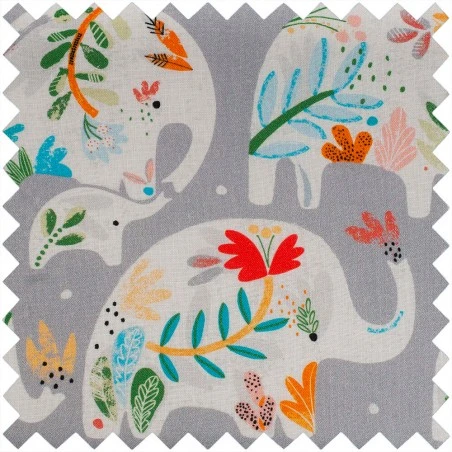 - Hecho de tela 100% algodón con estampado de elefantes.