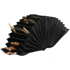 - Múltiples compartimentos para organizar agujas circulares intercambiables, cables y herramientas para tejer.