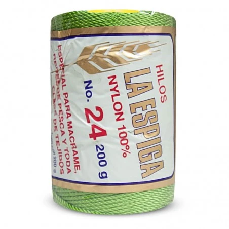 Hilos la Espiga de Omega Nº 24 es un hilo de Nylon 100%, perfecto para tejer a ganchillo bolsos, cestas, cinturones, bisutería, hamacas, cojines y más. Con un perfecto acabado brillante.
