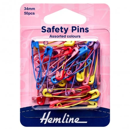 Los Imperdibles de Colores 34 mm de Hemline se presentan en un pack de 50 unidades. Estos imperdibles metálicos destacan por su alegre y llamativo revestimiento de color. Cuentan con un tamaño de 34 mm, lo que los convierte en la elección perfecta para una amplia variedad de aplicaciones en manualidades y costura.