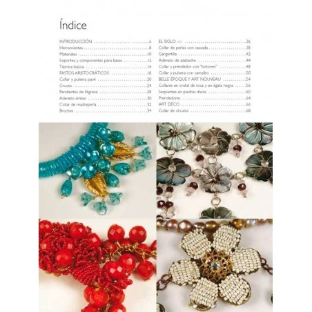 Podrá realizar joyas del siglo XIX como gargantillas y collares de perlas, joyería estadounidense como broches y otros, de la época de los años cincuenta, sesenta y setenta. En general gran variedad de bisutería para realizar de forma muy fácil y para todos los gustos.