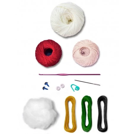 El Kit Amigurumi – Mrs. Claus – Circulo te ofrece todo lo que necesitas para tejer un encantador amigurumi de Mamá Noel. Con una altura de 32 cm, este adorable personaje será el complemento perfecto para tu decoración navideña. El kit incluye hilo de algodón Circulo Amigurumi, todos los accesorios necesarios, así como los materiales y herramientas requeridas para su confección.