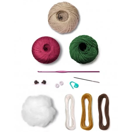 Con su carita adorable, el reno aportará un toque de ternura y alegría a tu decoración navideña. En el kit encontrarás hilo de algodón Circulo Amigurumi, muy fácil de trabajar a ganchillo. También se incluyen aguja de ganchillo, aguja para coser lana, relleno y accesorios, junto con un patrón en español, inglés y portugués. ¡Deja volar tu creatividad y sorprende a tus seres queridos con este simpático reno hecho a mano!