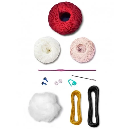 Además, cuenta con ojos de seguridad azules de 12 mm, que aportan un toque adorable a su expresión. ¡Disfruta de la experiencia de tejer y crea un Papá Noel único que traerá alegría a tus fiestas!