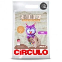El Kit Amigurumi Sonajero Búho de Circulo te permite crear un sonajero de ganchillo fácilmente. Contiene todos los materiales que se necesitan para tejer un búho que podrás unir al sonajero con forma de aro incluido en el kit.