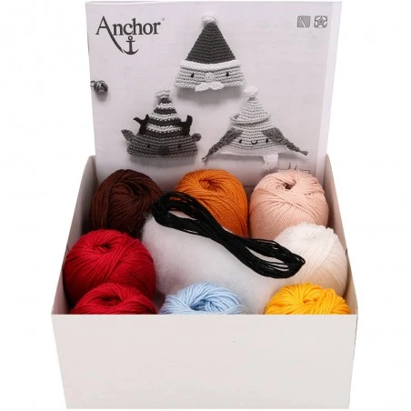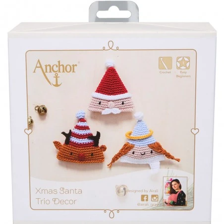 El Kit de Amigurumi – Decoración de Navidad de Anchor incluye hilos de algodón, relleno e instrucciones paso a paso para tejer estos divertidos accesorios decorativos. ¡Ideales para decorar el hogar en Navidad!