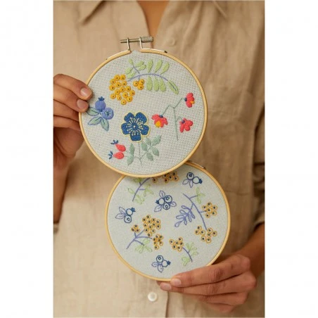 Con el kit de bordado DMC Duo Bayas del Bosque puedes realizar un bonito proyecto artesanal de bordado a mano. Incluye todos los materiales necesarios y las instrucciones, además de la tela con el dibujo impreso para facilitar el trabajo.