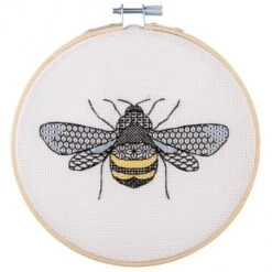 El Kit de Bordado Blackwork – Bee de Anchor incluye los materiales que necesitas para trabajar este diseño bordado de una abeja. El diseño tiene unas medidas de 13 x 13 centímetros aproximadamente una vez finalizado, por lo que podrás enmarcarlo para decorar el hogar o usarlo para personalizar prendas de ropa.