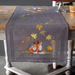 Características del Kit de Bordado Camino de Mesa – Zorros en Otoño – Vervaco: