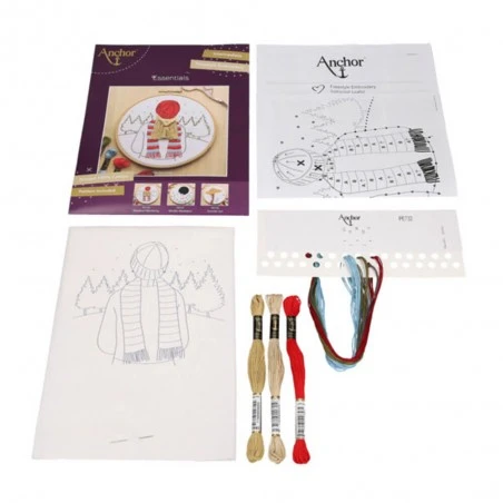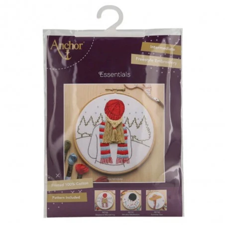 El Kit de Bordado Libre Weekend Wandering de Anchor te invita a sumergirte en una escena invernal mientras exploras y desarrollas tus habilidades de bordado. El kit incluye todos los materiales necesarios para bordar una chica en la nieve con una técnica de cabello en 3D que le aporta textura y un aspecto original.