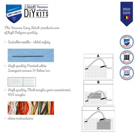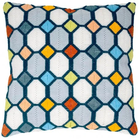 Características del Kit de Bordado Punto Largo Cojín con Cuadros de Vervaco: