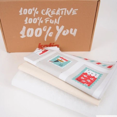 Incluye todo lo necesario para su confección. Encontrarás un panel de loneta con el diseño del calendario impreso y pequeñas piezas de tela estampadas con sellos con motivos navideños que se utilizan para confeccionar los 24 bolsillos del calendario. También se incluye una pieza de tela Canvas para la parte posterior del calendario y guata para el relleno interior, lo que aporta cuerpo y volumen.