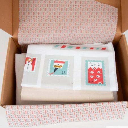 – 24 bolsillos de tela con estampado de sellos navideños (100% Algodón)