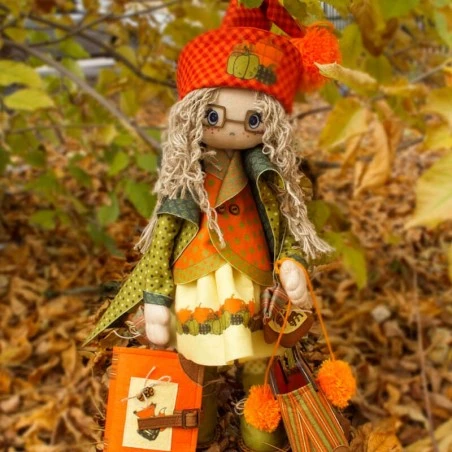 Dentro encontrarás las instrucciones e imágenes que te ayudarán a realizar esta muñequita con colores otoñales, perfectos para la época de Halloween. También podrás hacerle un bolso, zapatos, un librito, un gorro y muchos más accesorios…