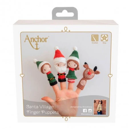 El Kit de Ganchillo – Marionetas de Navidad de Anchor es la clave para dar vida a la magia navideña en tus manos. Con este kit, podrás tejer 4 títeres de dedos de ganchillo, cada uno con la forma de un entrañable personaje navideño: Papá Noel, dos elfos y un reno.