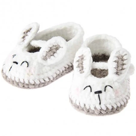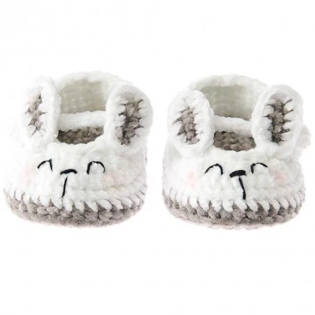 Los patucos con forma de conejito pueden hacerse en dos tamaños: de 3 a 6 meses o de 6 a 9 meses, y están hechos con el suave hilo de chenilla Ricorumi Nilli Nilli, perfecto para la delicada piel de los más pequeños. Un kit perfecto para hacer un regalo especial y adorable.