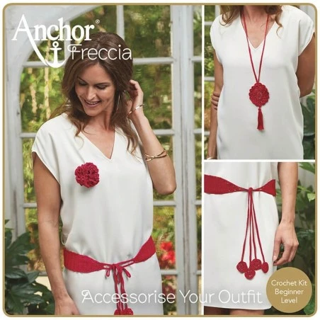 Anchor presenta el Kit de ganchillo – Accesorios, que forma parte de su nueva colección: Summer Stripes. Gracias a esta caja podrás realizar 3 complementos diferentes para darle un toque de color y originalidad a tus prendas. Realiza fácilmente un cinturón, un collar y un broche a juego gracias a este kit.