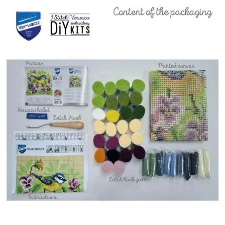 Características del Kit de Latch Hook – Blue Tit on Pansies de Vervaco:
