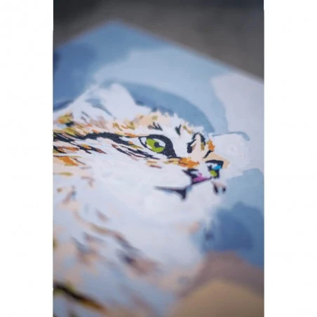 El Kit de Pintar por Números – Gato del Bosque de Lanarte te permite trabajar un cuadro de pintura fácilmente. El lienzo incluido en el kit presenta el dibujo preimpreso dividido en números. Tan solo debes guiarte por ellos y pintar cada número con el color que se indica. ¡Obtendrás un resultado original de forma fácil!