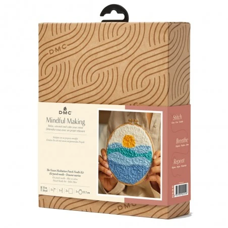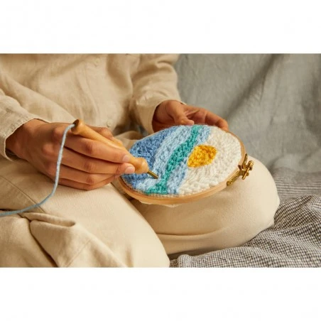 Este kit de Punch Needle de DMC es perfecto para iniciarte en esta técnica y aprender a bordar de forma diferente. Con el kit de punch needle Marina de DMC podrás bordar en relieve el mar con una puesta de sol. Para jugar con la profundidad de la olas se utilizan diferentes tonos de color azul. ¡Aprende fácilmente con este pack tan completo!