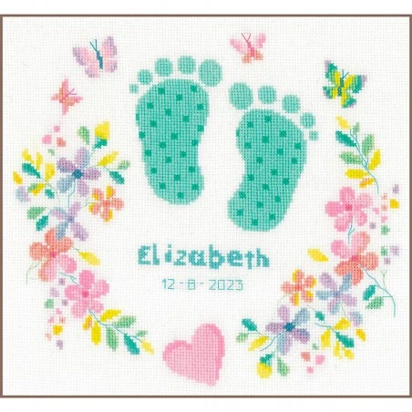 El Kit de Punto Cruz – Pies de Bebé – Vervaco te permite bordar un hermoso detalle personalizado para bebé. Con la posibilidad de añadir un nombre, una fecha u otros detalles relacionados con el recién nacido, este kit te brinda la oportunidad de crear un regalo especial y dar la bienvenida al bebé de una manera única.