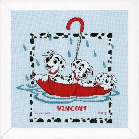 El kit de punto de cruz Disney Dálmatas de Vervaco incluye todos los materiales necesarios para bordar este divertido cuadro de los 101 Dálmatas.