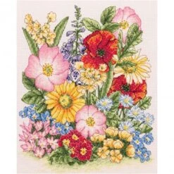 El Kit de Punto de Cruz – Meadow Flowers de Anchor es perfecto para trabajar un diseño floral muy alegre, idóneo para personas con experiencia avanzada en el bordado a punto de cruz.