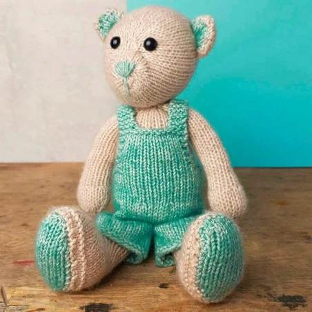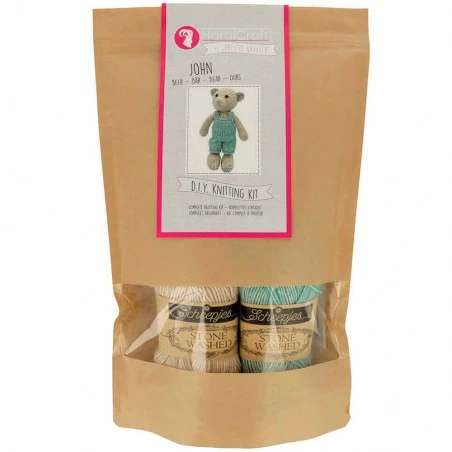 El kit de punto – Osito John te permitirá tejer un osito utilizando el hilo Stone Washed de la marca Scheepjes. El resultado final te enamorará: un osito muy adorable con un peto de color azul.