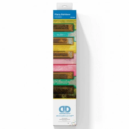 El kit de Diamond Painting Piano Rainbow de Diamond Dotz presenta un diseño de teclas de piano de colores, precioso a la vista y muy divertido de trabajar. El tamaño total de este diseño es de 30 x 30 centímetros una vez que el cuadro está finalizado.